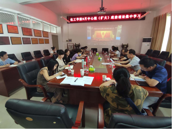与会人员集中学习《习近平在十九届中央政治局第二十一次集体学习时强调贯彻落实新时代党的组织路线 不断把党建设更加坚强有力》《习近平在纪念中国人民抗日战争暨世界反法西斯战争胜利75周年座谈会上的讲话》《齐心协力再接再厉 统筹做好教育教学和疫情防控工作——校长冯征在2020年暑期研讨会上的讲话》、《大象传媒