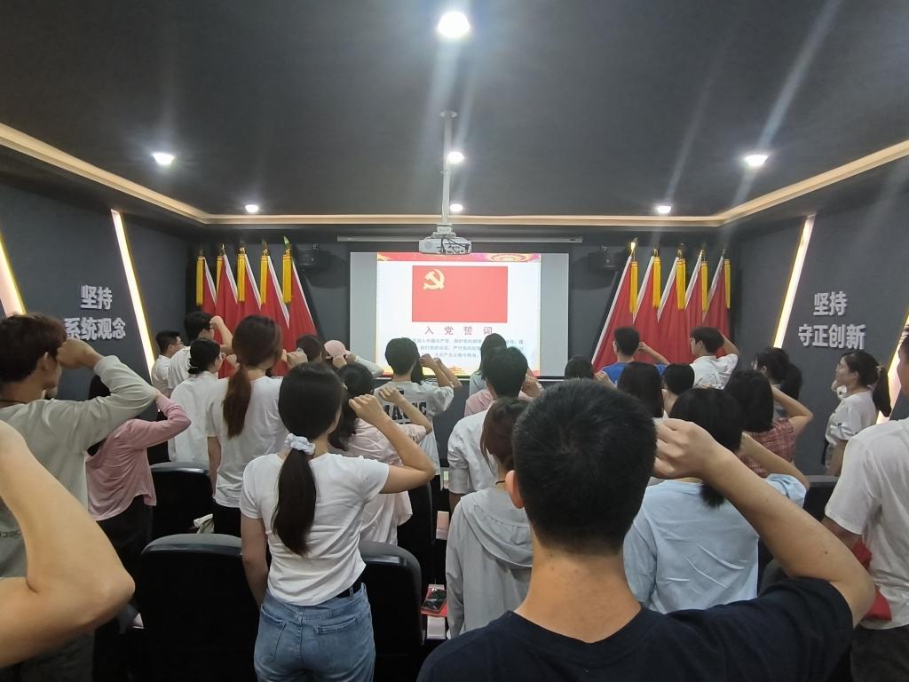 “我志愿加入中国共产党……”在基地宣誓厅,全体党员面向鲜红党旗,举起右拳庄严宣誓。铿锵誓言回荡在展厅中,既是对入党初心的郑重回望,更是对廉洁奉公、廉洁修身的庄严承诺。