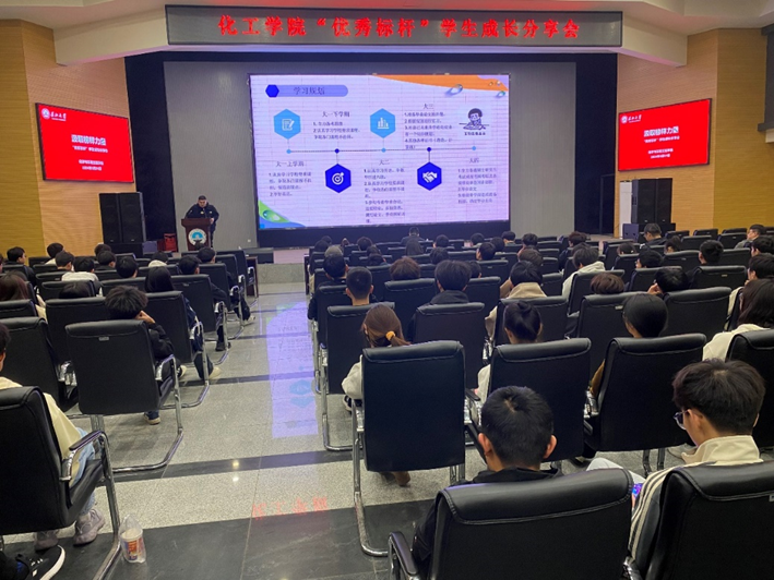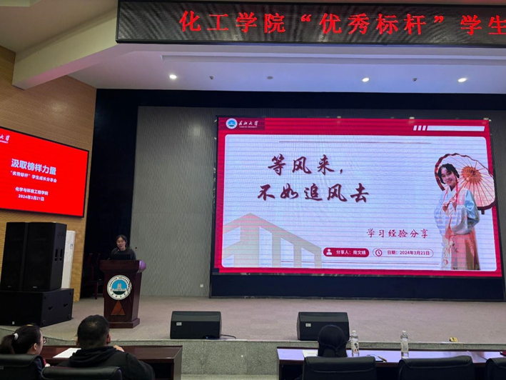 2020级高材专业张欣媛、2021级化学专业南文婧分别分享了学习经验,她们都曾获国家奖学金、三好学生、优秀学生干部、共青团员标兵等荣誉。张欣媛主持一项省级项目,以共同一作身份发表SCI一区文章一篇,以第一作者身份发表SCI二区文章一篇,曾任院学生会生活部部长,被评为2022-2023年度十佳大学生。她以自身从绩点落后到名列前茅的实际经历,向同学们强调了榜样的力量,鼓励同学们要多做多问,始终坚守脚踏实地的学习态度。南文婧分享了自己对于整理知识点的学习方法和心得,鼓励同学们全面发展,不拘于课本知识,多参加竞赛提升思维能力,以实际行动战胜焦虑情绪。
