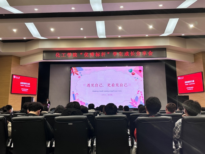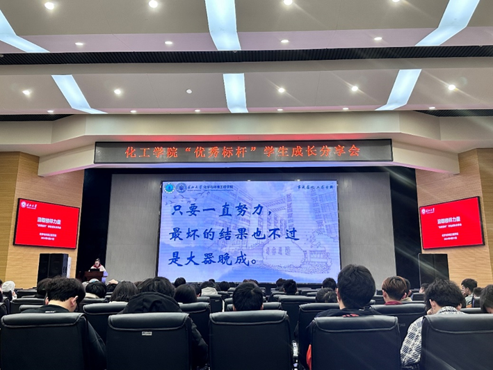 于3月21日晚在农科大楼1058报告厅举办“优秀标杆”学生成长分享会报告,5位优秀学生分享了成长经验,党委副书记杨会军与2023级学生一起聆听了报告。