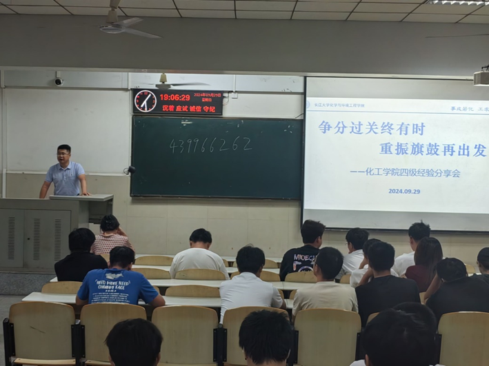 于2024年9月29日晚18:30,在12教105召开了四级经验分享会。党委副书记杨会军,辅导员王娜,以及21、22、23级四级未通过的学生参加大会。