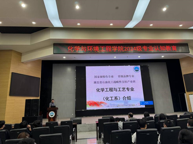 化工系主任田明磊老师紧紧围绕专业发展向同学们介绍了化学工程与工艺专业的发展前景和开设课程等基本信息,介绍了本专业所拥有的实验仪器、六个专业实验室有关情况,表示能为同学们提供优越的学习与科研条件。