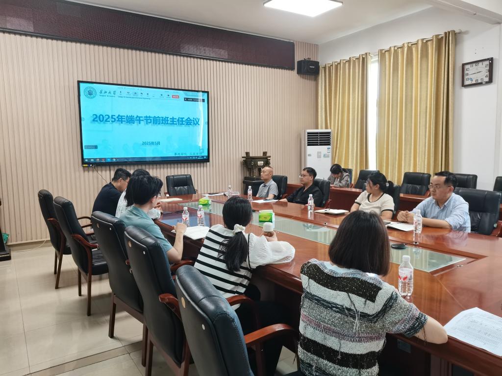 于2025年5月23日下午在14教西303会议室召开端午节前班主任工作部署专题会议。学院党委副书记杨会军、全体辅导员、班主任参加会议,重点围绕假期端午节前安全管理、防溺水专题工作、毕业生文明离校及分层分级教育等关键工作进行部署。