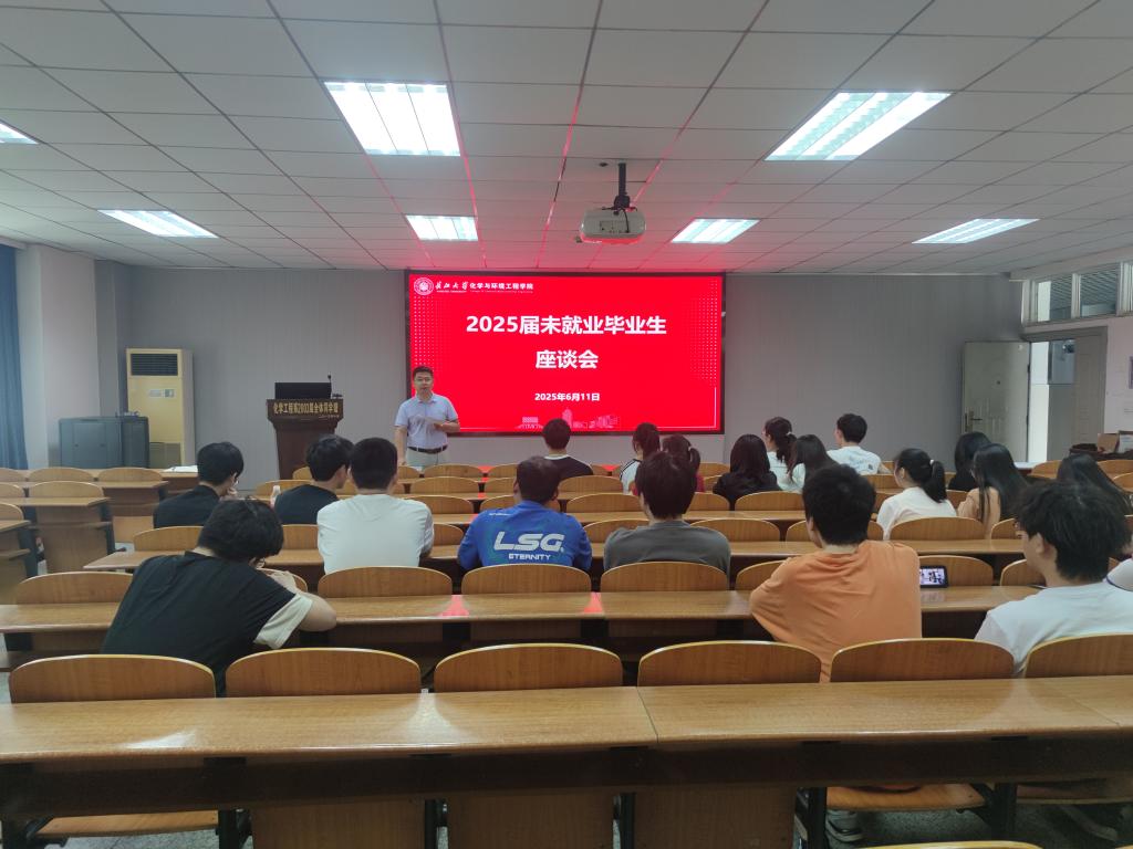 在14教北201召开 2025届未就业毕业生座谈会。学院党委副书记杨会军、学工办主任王陈,辅导员王娜及全体未就业毕业生参加会议。