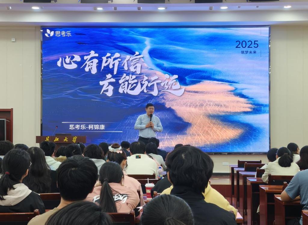 "化雨"讲坛第十讲暨本科生职业导师聘任仪式在这里成功举行。为帮助学生在夯实学业基础的同时科学规划生涯发展路径,学院邀请深圳市思考乐文化教育科技发展有限公司人力资源总监柯锦康先生担任主讲嘉宾,给2024级同学带来“心有所信,方能行远”的讲座。