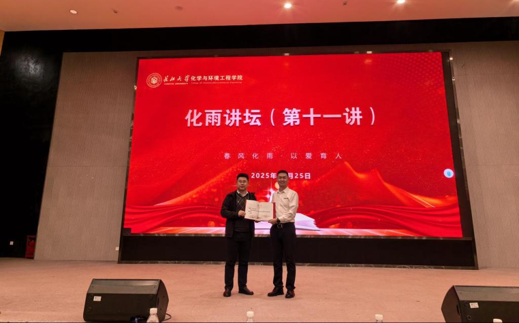 活动伊始,杨会军介绍了“化雨”讲坛的设立背景与职业导师制度的核心理念。他指出,化学化工学科作为支撑国家能源、材料、环保等战略产业发展的关键领域,不仅需要扎实的理论基础,更需紧密对接产业前沿。学院设立“化雨”讲坛,旨在通过定期邀请校内外专家学者和行业精英开展专题讲座,围绕学科前沿、科研攻关、产业发展与生涯规划等主题,分享实战经验与成长路径,帮助学生“以学促思、以思促行”。随后,杨会军代表学院向邓勇颁发本科生职业导师聘书。