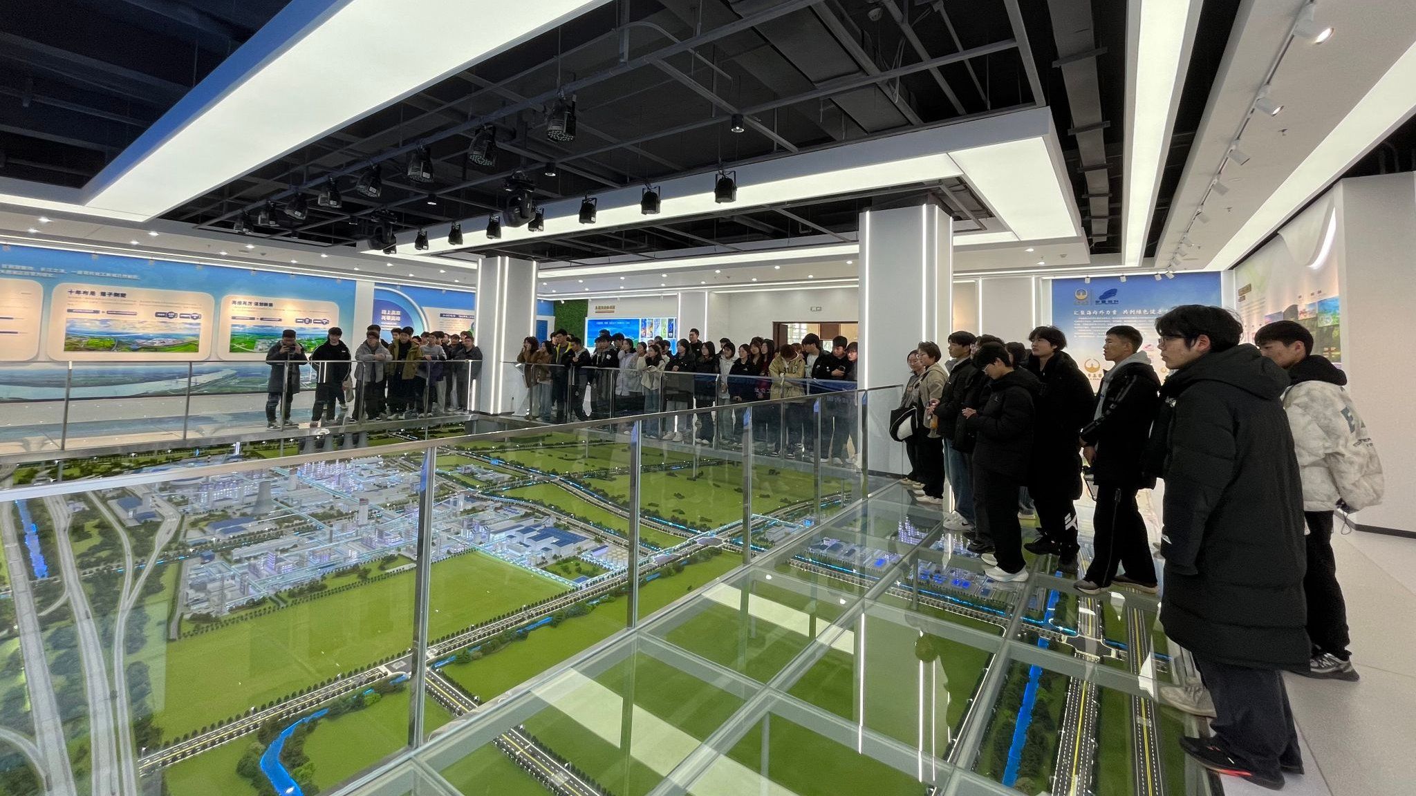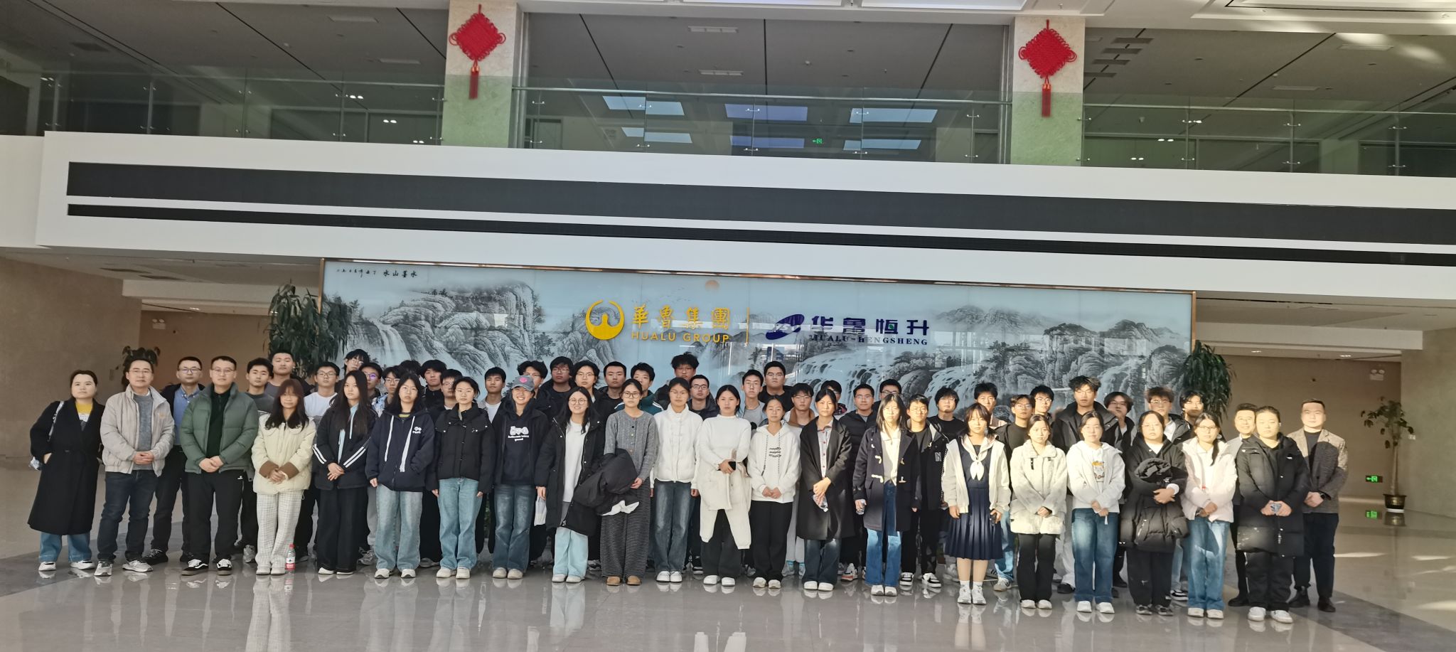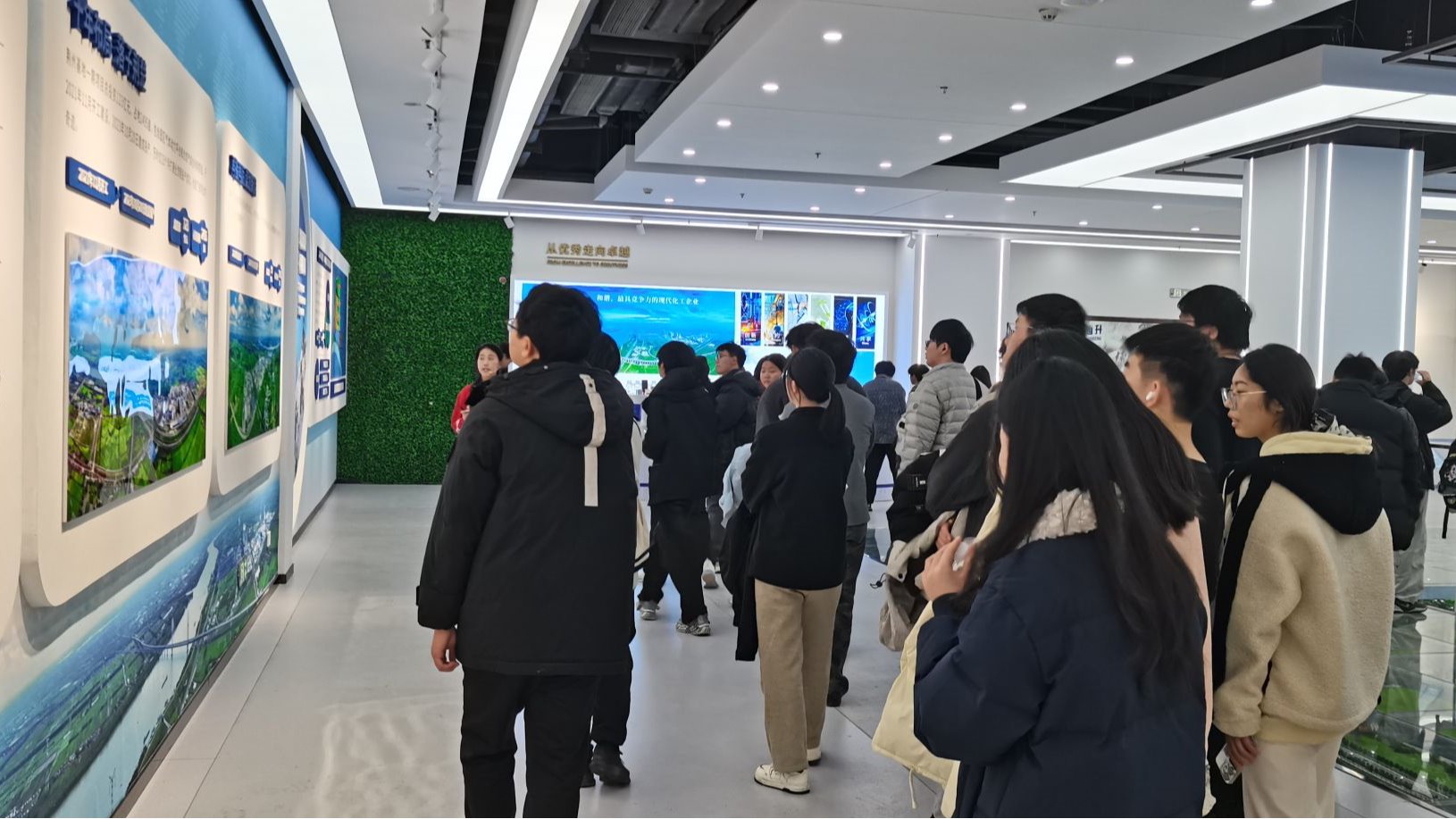 当日下午,同学们分两批有序抵达企业。在公司工作人员的热情接待和引导下,师生们首先参观了企业展厅。通过详实的图文资料和生动的讲解,大家深入了解了华鲁恒升的发展历程、主营业务、核心产品以及在绿色化工、智能制造等方面取得的突出成果。随后,师生一行走进被誉为“生产大脑”的中控室,室内各类智能仪器设备整齐排列,大屏幕上实时跳动着生产数据与监控画面,展现出高度自动化与信息化的现代化工生产场景。工作人员结合实际操作,详细介绍了中控系统的功能、运行机制及在安全生产中的核心作用,激发了同学们浓厚的学习兴趣。