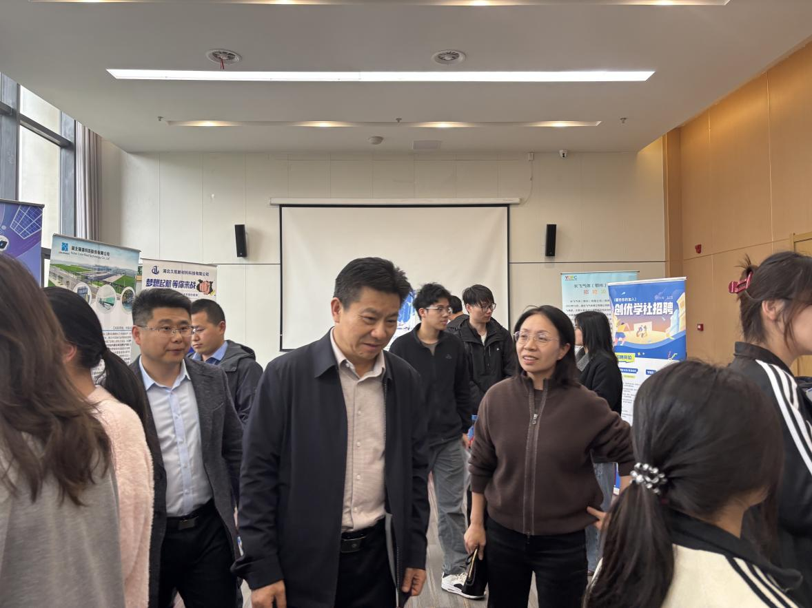 2026届毕业生春季校园供需见面会在东校区四食堂三楼成功举办。党委常委、党委组织部部长、党委统战部部长李应军、就业工作处处长徐波莅临现场指导工作,学院党委书记王丽及相关负责人陪同参与。