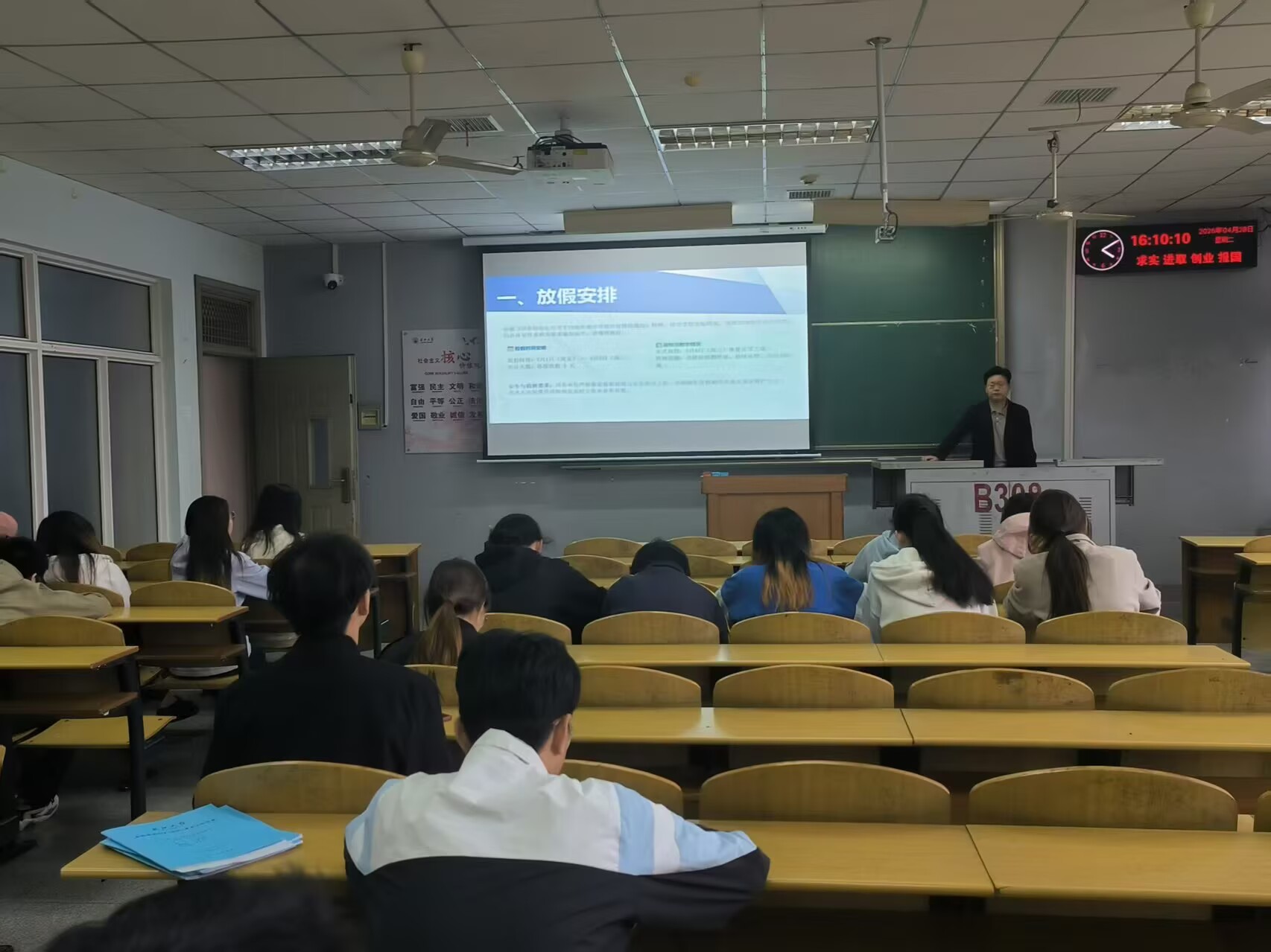 组织全体学生召开五一假期安全主题班会。本次班会分层有序开展,本科生各班由班主任牵头组织,研究生班级由辅导员统筹安排,导师深度参与,实现安全教育全覆盖。