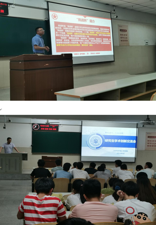 最后,邢继钊、蒋筑阳、李锐三位毕业研究生代表结合自身体验,深入浅出的讲解了化工学子科研创新生活。邢继钊结合参加“挑战杯”经历分享了自己的经验;蒋筑阳分享了自己的科研经历与心得体会,希望各位师弟师妹珍惜时光,创造更大成绩;李锐讲到如何在读研期间去丰富自己的简历,进而找到理想的工作。
