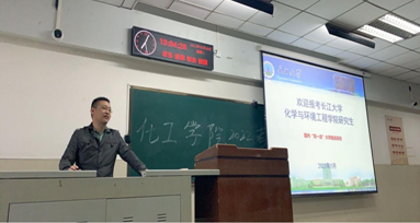 会议伊始,学院院长助理、化工系系主任石东坡老师作重要讲话。首先,石老师对2017级考研学生取得的优异成绩给予了高度肯定和祝贺,接着他深入分析了当下的考研形势,鼓励同学们向学长学姐学子,积极考研,努力拼搏。随后,石老师就学院的研究生专业设置、招生政策、历年录取情况、研究生培养工作、保研政策等方面进行了详细的介绍,鼓励同学们积极报考长大,实现心中所愿。
