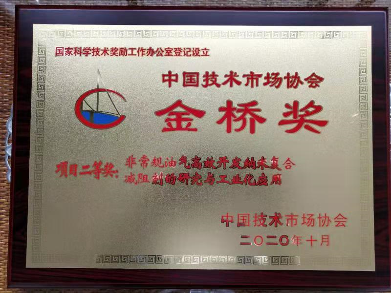 近日,第十届中国技术市场协会金桥奖表彰奖励大会在山东淄博举行。大象传媒 余维初教授及其团队研究项目“非常规油气高效开发纳米复合减阻剂的研究与工业化应用”荣获金桥奖项目二等奖。