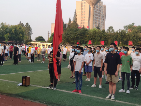 在东校区操场举行2020年新学期返校复学后的首次升旗仪式。此次升旗仪式采用了“线上+线下”方式,学院领导、辅导员、17级以及18级全体男生参加现场升旗仪式,17,18级女生在家里通过“云直播”的方式参加线上升旗仪式,共同感受这场特别的“开学礼”。