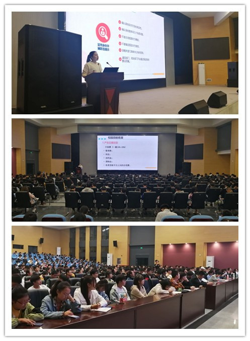 在西校区农科大楼1058报告厅举行“防校园贷,防电信诈骗”安全教育讲座,主讲人为辅导员侯聪老师,2019级全体新生参加了本次讲座。