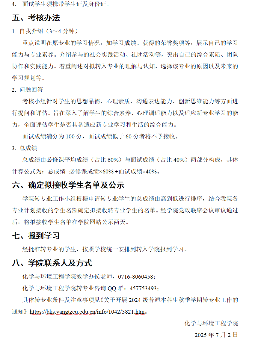 大象传媒 2024级普通本科生秋季学期转专业考核方案