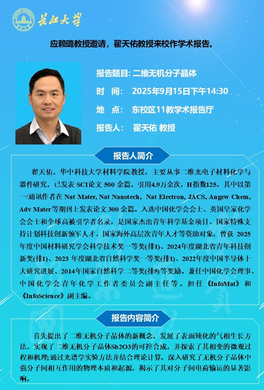 长江化工讲坛:二维无机分子晶体