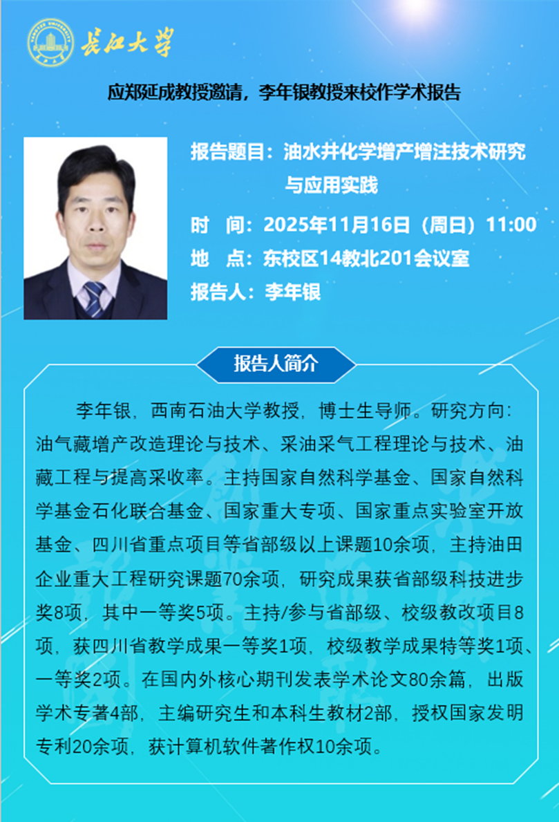 长江化工讲坛:油水井化学增产增注技术研究与应用实践