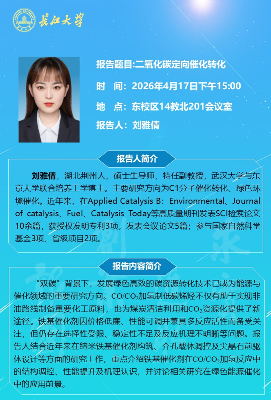 长江化工讲坛:纳米功能材料设计及其环境能源应用